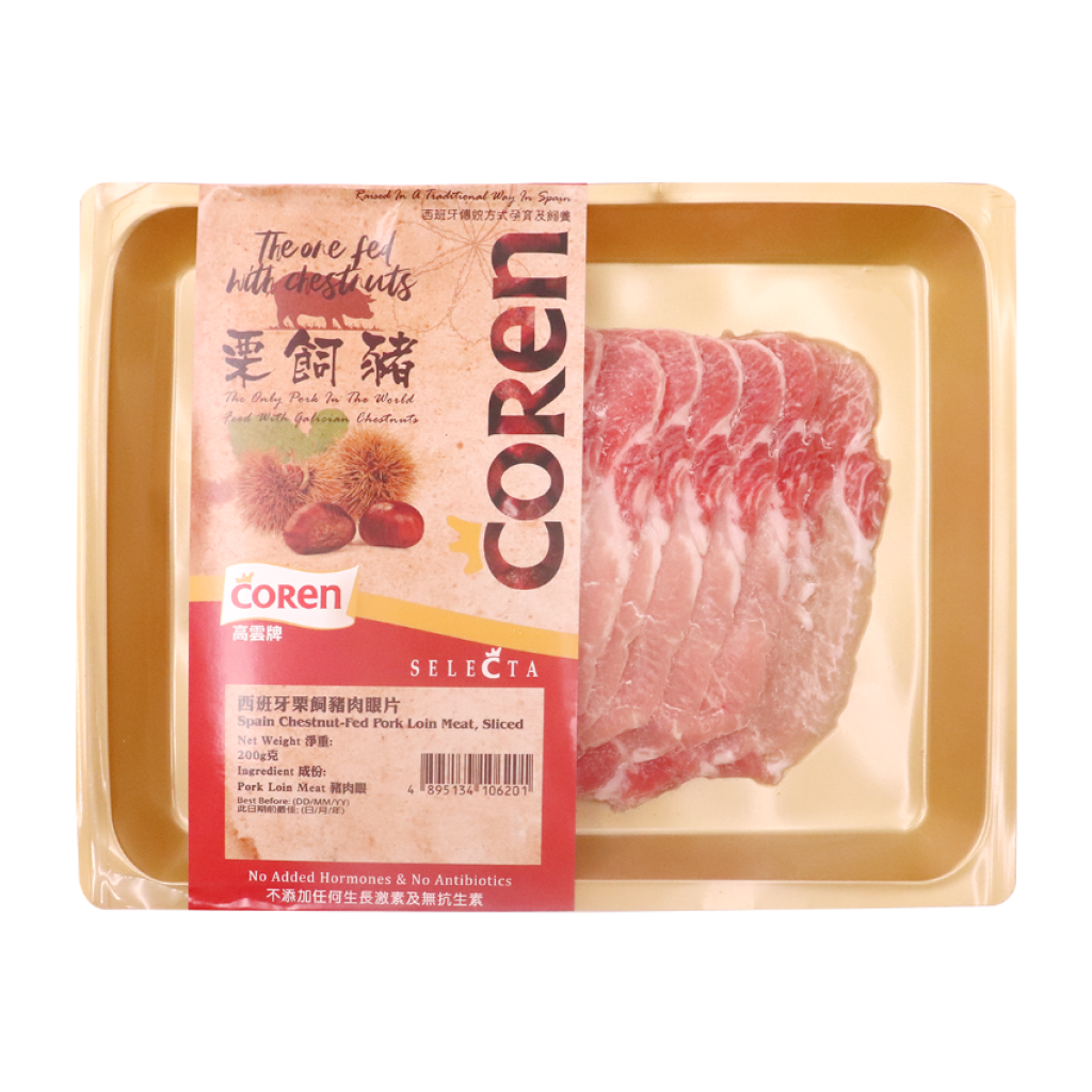 Chestnut-Fed Pork Loin Meat Sliced (No Added Hormones) 西班牙栗飼豬肉眼火鍋片 (無激素添加) 200g