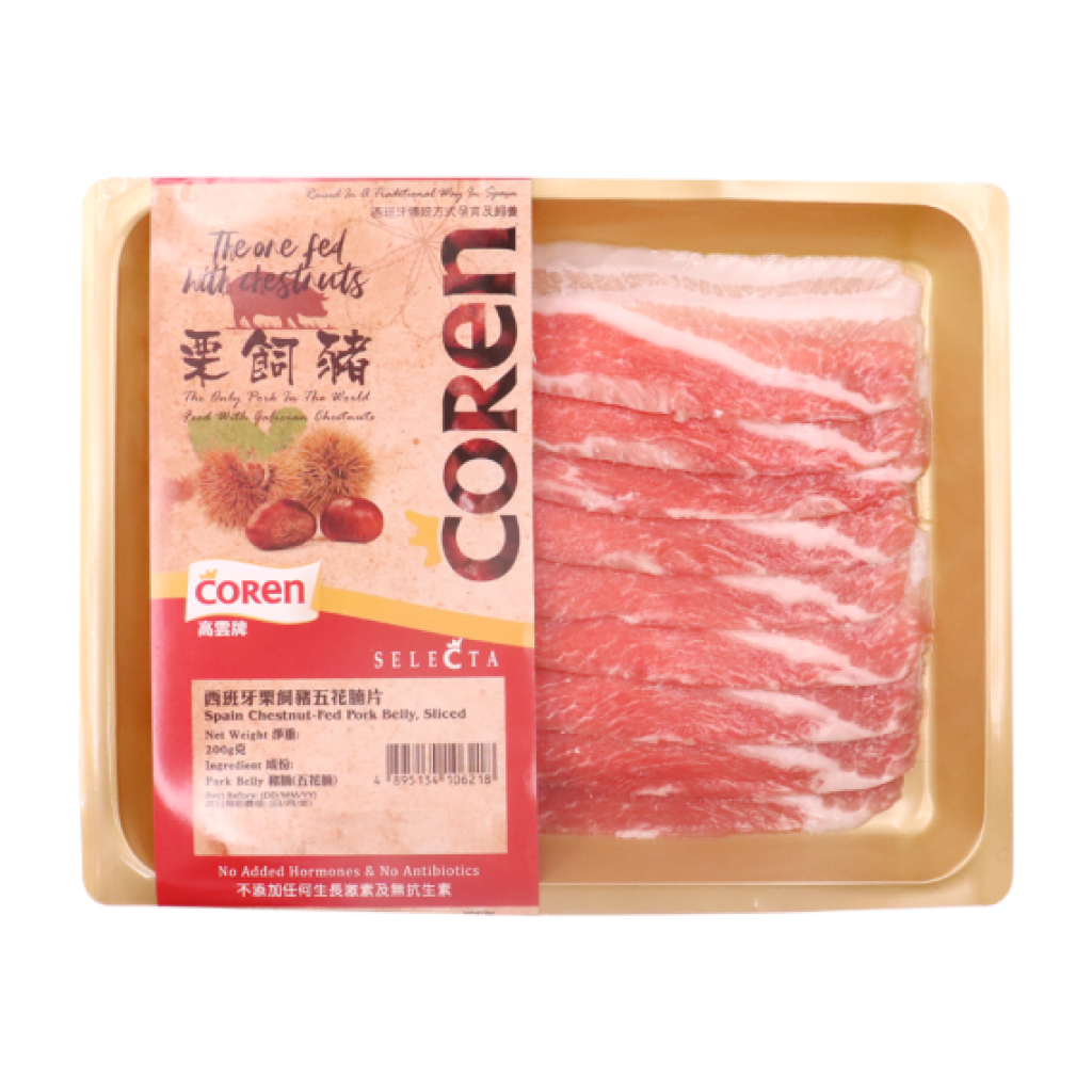 Chestnut-Fed Pork Belly Sliced (No Added Hormones) 西班牙栗飼豬五花腩片 (無激素添加) 200g