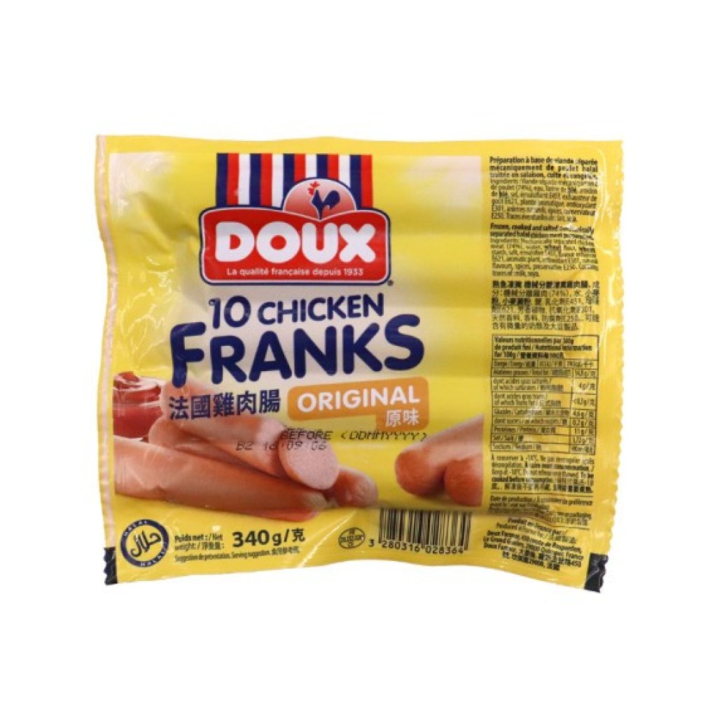 香港市場上的法國雞肉腸(原味)以 DOUX (寶鵰牌) 為最主流品牌。它以脂肪含量較低、肉質鮮嫩及清真 (Halal) 認證著稱。